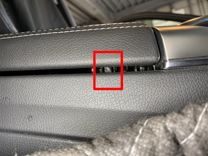 はじめに両端のツメを押し込みながら外し、アームレストボタンを押しながら、パネルを持ち上げ外します。