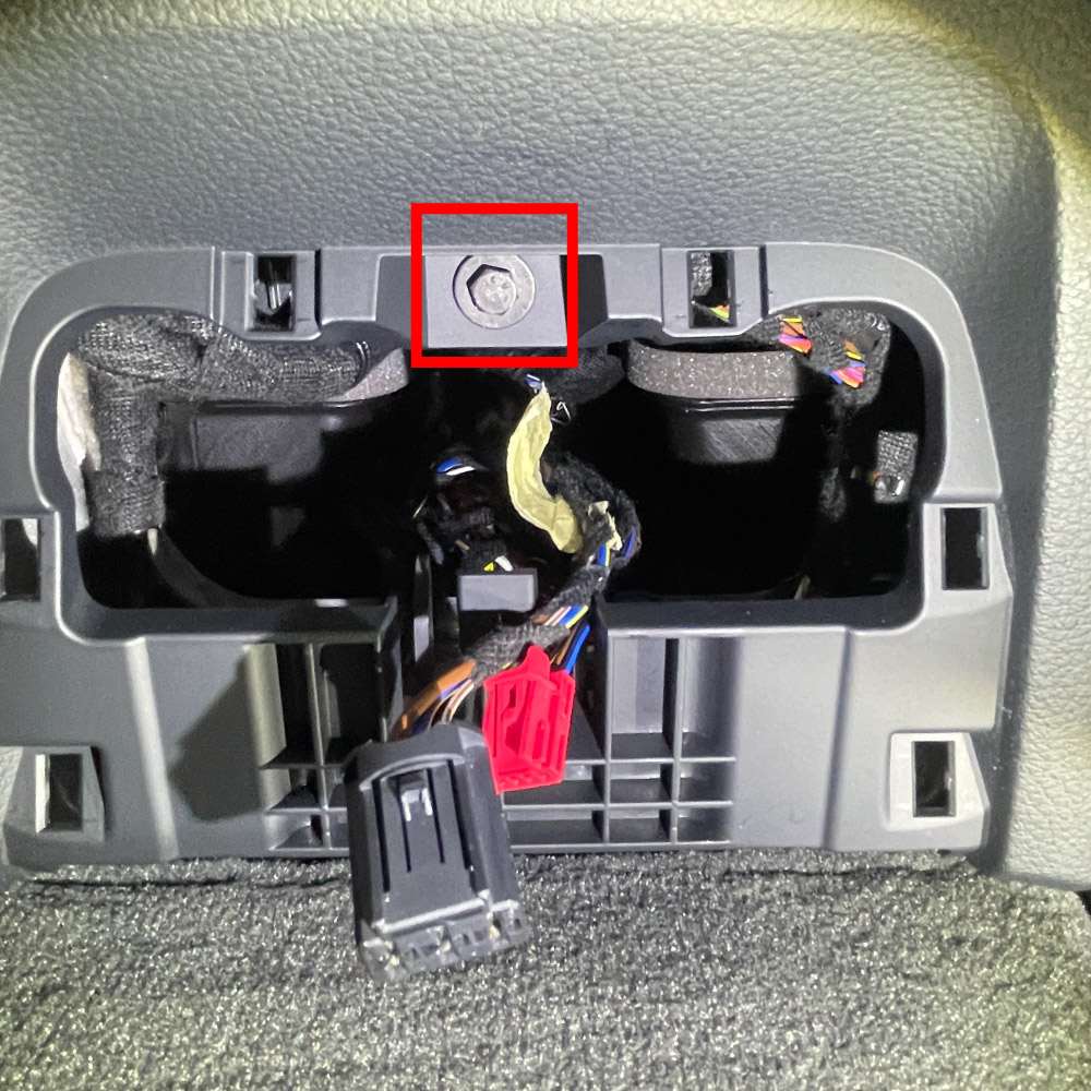 外したカバーAの裏を確認し、「シガーソケット部の黒色コネクター」および「USBハブの赤色コネクター」を外します。