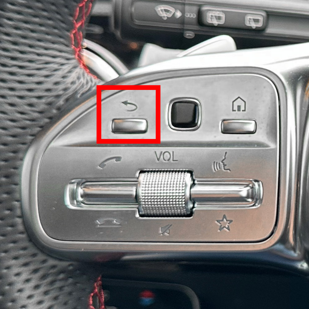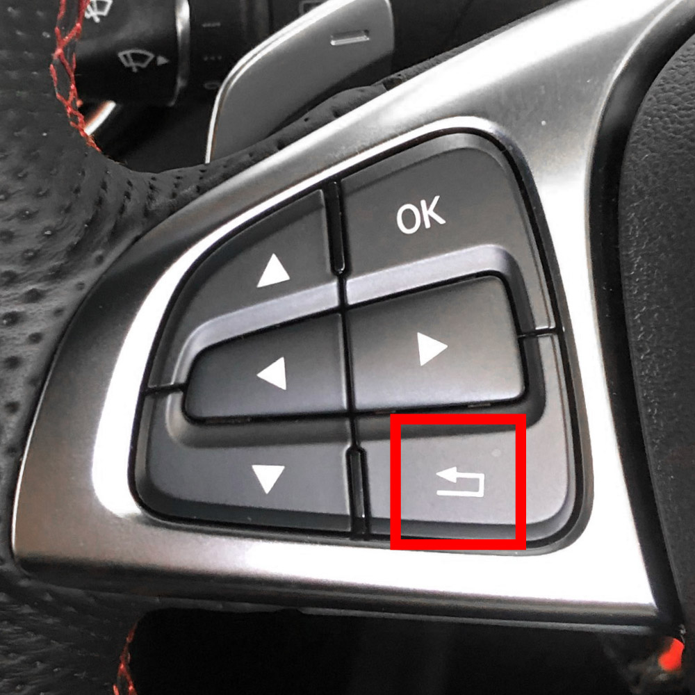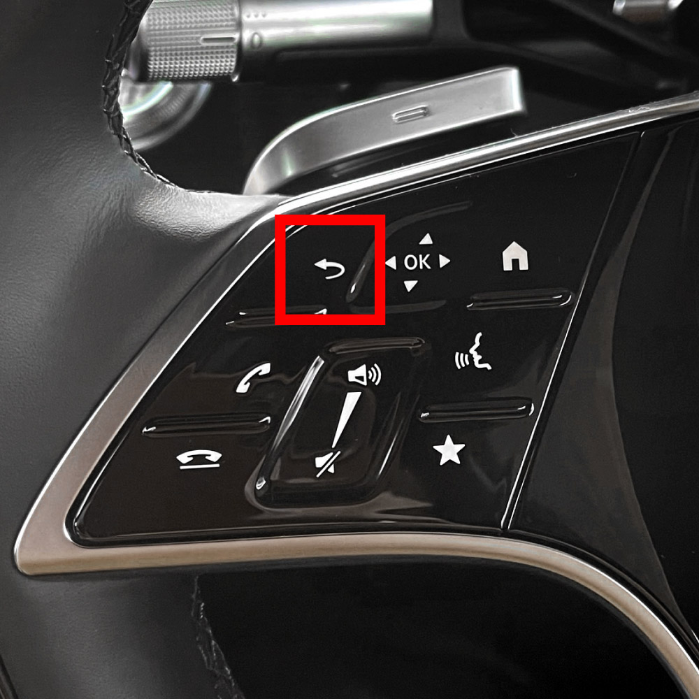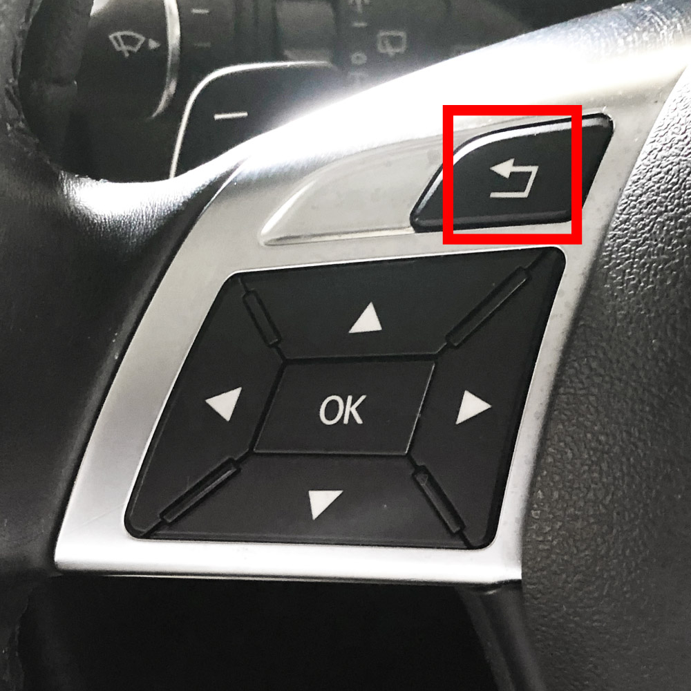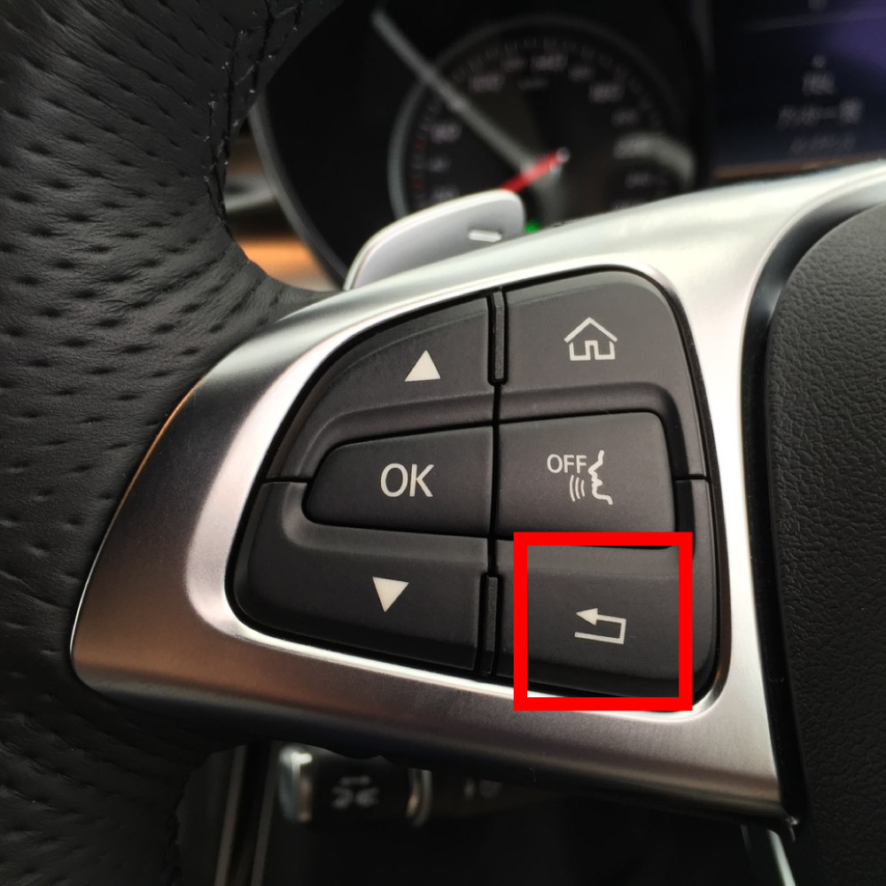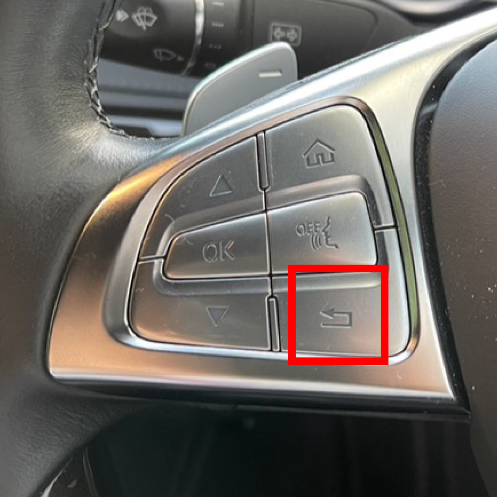 ・右ハンドル車はステアリング左側のリターンボタン(左ハンドルの車は右側のリターンボタン)を3秒間長押しすることで、ON/OFFの切替をおこないます。